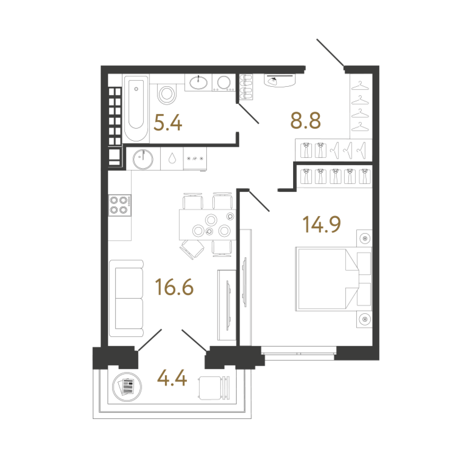 В проекте представлено 225 квартир площадью от 32 до 147 метров. Сдаются они без стен, с увеличенными окнами и высотой потолков 3 метра. На верхних этажах расположены квартиры с террасами.